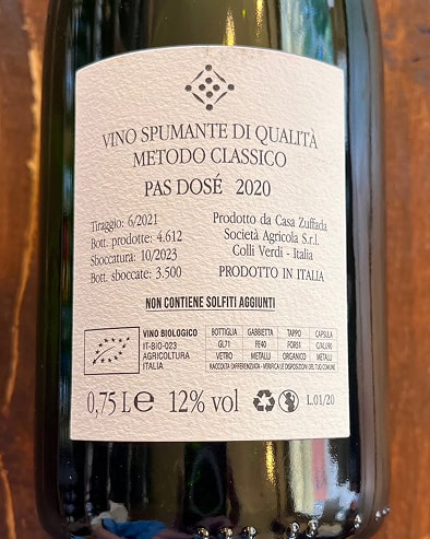 INFO PRODUTTIVE | Fermentazione spontanea in accaio seconda fermentazione in bottiglia con lieviti indigeni. Affinamento almeno 30 mesi sui lieviti nessun uso di solfiti durante tutta la vinificazione, nessun dosaggio.